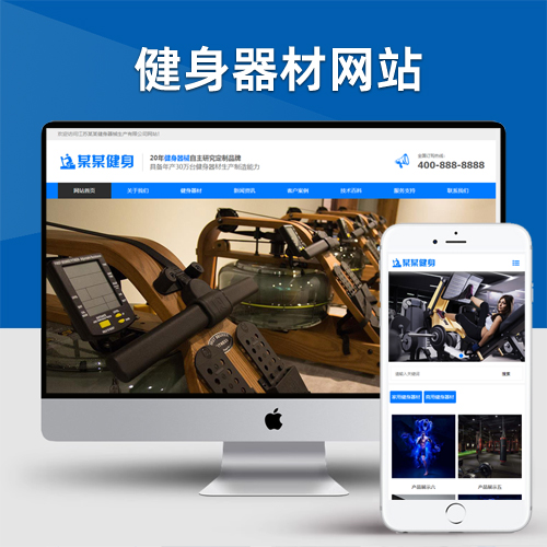 (自适应手机端)响应式营销型运动健身器材pbootcms网站模板-蓝色健身器材网站源码下载